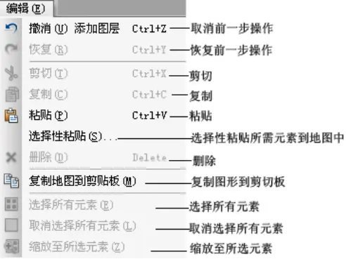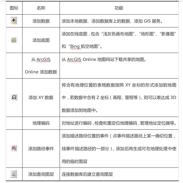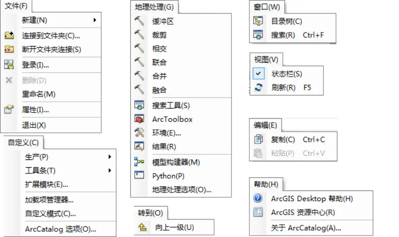主菜单包括【文件】、【编辑】、【视图】、【书签】、【插入】、【选择】、【地理处理】、【自定义】、【窗口】、【帮助】10个子菜单。