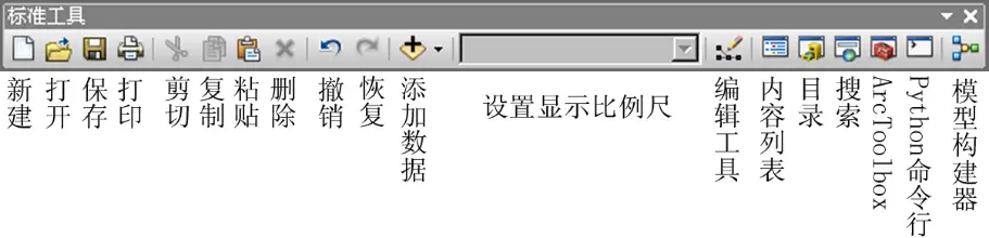 【标准】工具条中共有19个工具,包含了有关地图数据操作的主要工具。