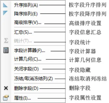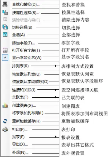 属性表包含有地理要素的属性信息,属性表由行和列组成,并且所有行数据都有相同的列数。属性表可以用于查询、计算、显示和分析等操作。ArcGIS中,表的行和列分别称为记录和字段,字段可以存储不同类型的数据,例如文本、数值、日期等。属性表可以是与地理要素关联的,也可以是独立的dBase表、INFO表、Excel表或者Access数据库等。