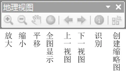 (2)地理视图工具条:【地理视图】工具条共有8个工具。