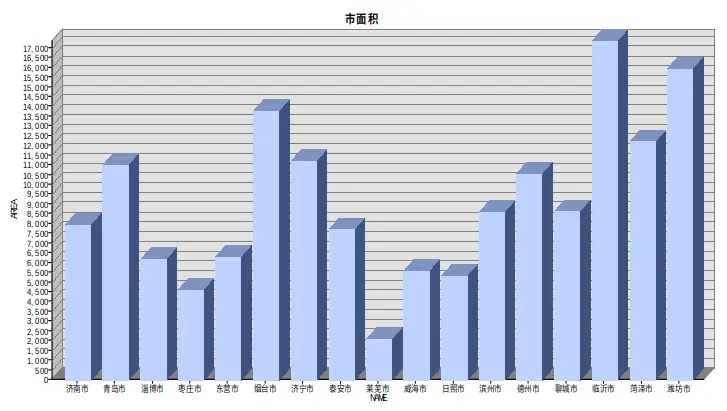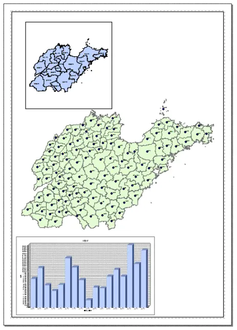 (20)添加市面积图表。主菜单【视图】—>【图表】—>【添加图表】,打开创建图表对话框。在创建图表向导中设置如下:图表类型“垂直条块”,图层“市”,值字段“Area”,X标注字段,取消勾选“添加到图例”。