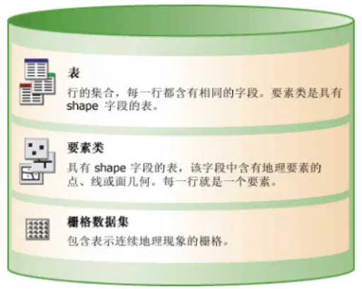 数据在Geodatabase中的存储为灰色调,其形式和可以存储的数据格式。