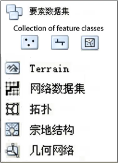 要素类数据集是具有相同空间位置和一组通用属性列的常用要素的同类集合,例如,表示道路中心线的线要素类。最常用的四个要素类分别是点、线、面和注记(地图文本的地理数据库名称)。