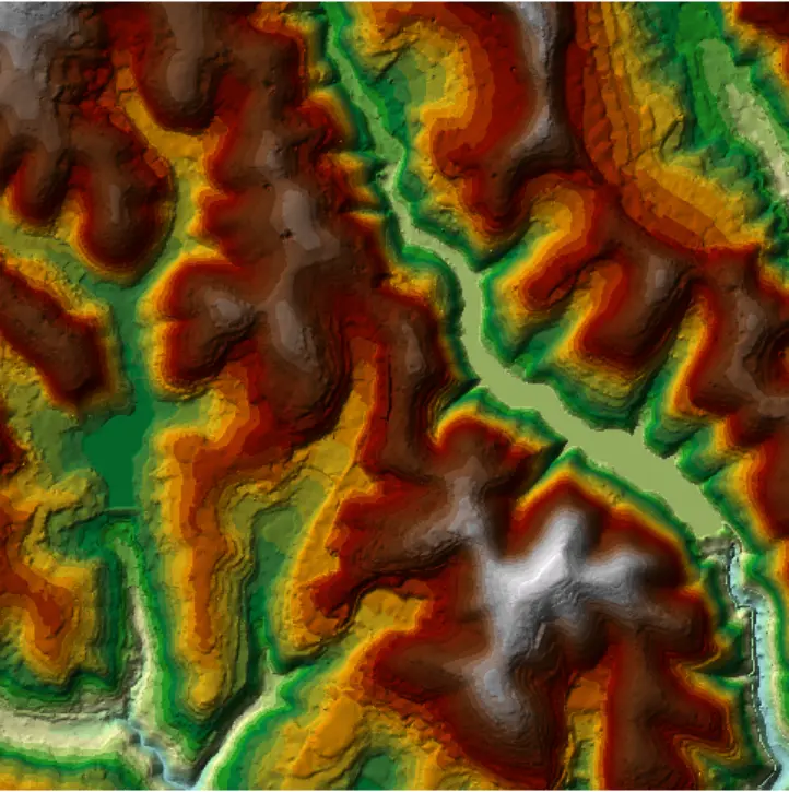 格网可以存储如高程表面之类的连续数值,也能存储分类数据,如植被类型数据。