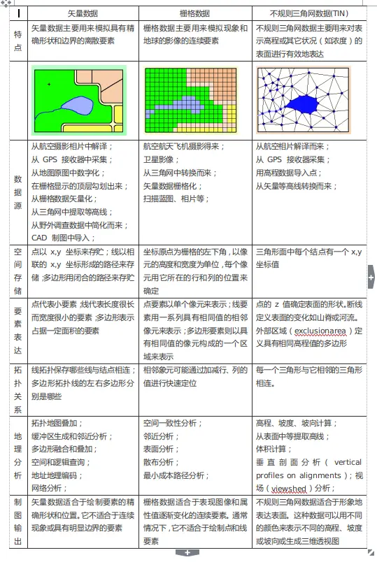 可以用三种基本的方式来模拟现实世界:以矢量格式的离散数据集、以具有光谱或属性数据的像元格网或一系列三角形点拟合一个表面。