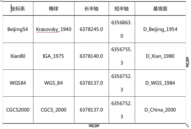 Beijing54,Xian80,CGCS2000地理坐标系参数如下所示。