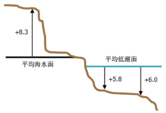 基于高度的平均海平面坐标系显示一个z值。落到平均海平线以下且以其为参照的任何点都具有负 z 值。平均低潮面具有两个与之关联的 z 值。由于平均低潮面是基于深度的,因此 z 值为正。落到平均低潮面以上且以其为参照的任何点都具有负 z 值。