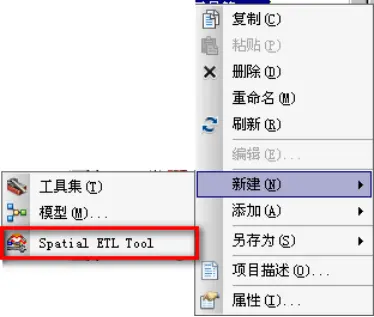 (3)在新建的【工具箱】上右键选择【新建】----【Spatial ETL Tool】,如图所示。打开【Create Translation Workspace Wizard】向导对话框。