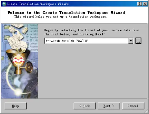 (4)在【Create Translation Workspace Wizard】向导对话框中设置数据格式为:“Autodesk AutoCAD DWG/DXF”,如图所示。单击下一步。