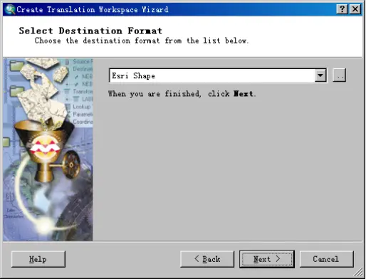 (6)在【Select Destination Format】中选择:“Esri Shape”作为转换后的数据格式,如图所示。单击下一步。