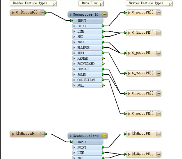 空间ETL工具是用户创建的地理处理工具,可在不同数据模型和不同文件格式之间变换数据。空间 ETL 工具能够提供的流程和数据流范围很广,它可以实现简单的格式转换,也可以实现重新构建几何和属性的复杂转换,可以将其用作独立的地理处理工具。此方法是使用 FME Workbench 在转换工作空间中创建空间 ETL 工具,然后将其保存在工具箱中。