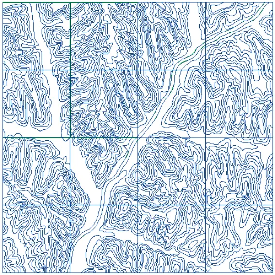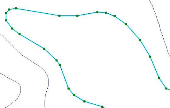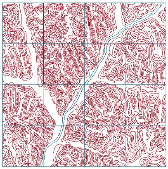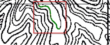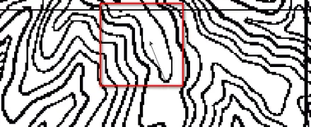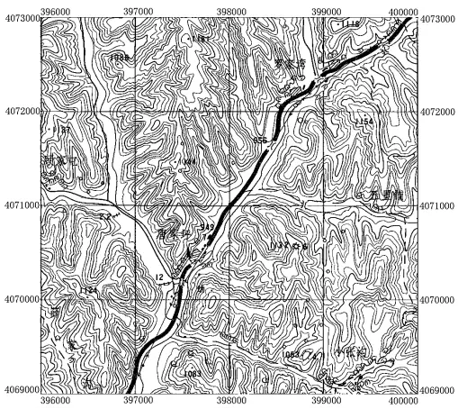 (2)屏幕鼠标跟踪矢量化。屏幕鼠标跟踪矢量化又分为全手工矢量化和半自动矢量化。全手工矢量化是操作人员在屏幕上逐点跟踪目标物体完成矢量化。半自动矢量化是由操作人员首先指定一条线的起点,软件自动跟踪至其不能判断去向的位置(交叉点、断裂处、文字标记处)然后由人工指定新的走向,软件再次进行跟踪,直至矢量化完成。此方法较好的兼顾了全手工矢量化和软件自动矢量化的优点,矢量化速度快,后续编辑工作量小,是目前最常采用的办法。