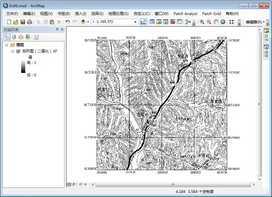 (4)存储二值化位图。结果位于:“ch6\地图矢量化\Data\地形图(二值化).tif”。
