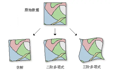 ArcGIS提供了3种空间校正变换的方法:仿射变换、相似变换、投影变换。