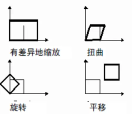 仿射变换可以有差异地缩放、扭曲、旋转和平移数据。如图所示。