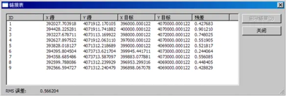 上述三种变换方法都需要考虑转换前后坐标精度的问题,用残差和均方差(RMS)表示精度高低。