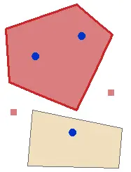 包含一个点 | 要求每个面包含一个点要素且每个点要素落在单独的面要素中。如果在面要素类的要素和点要素类的要素之间必须存在一对一的对应关系(如行政边界与其首都),此规则非常有用。每个点必须完全位于一个面要素内部,而每个面要素必须完全包含一个点。点必须位于面要素中,而不是边界上。 |