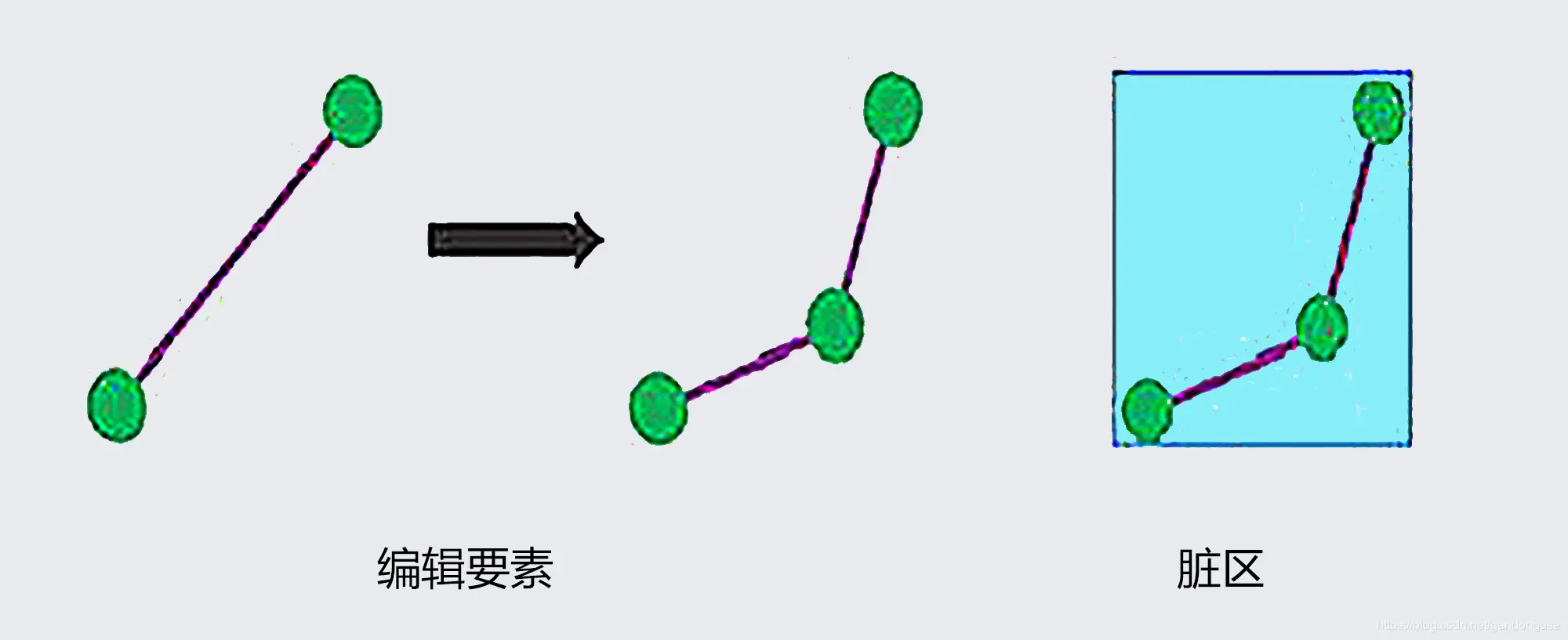 脏区在要素编辑之后产生,重新进行拓扑验证之后,脏区会消失。