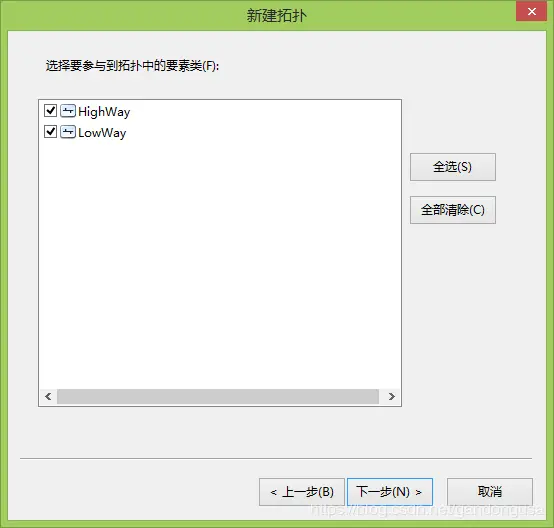 (3)在选择要参与到拓扑中的要素类中选择:HighWay和LowWay,单击【下一步】。