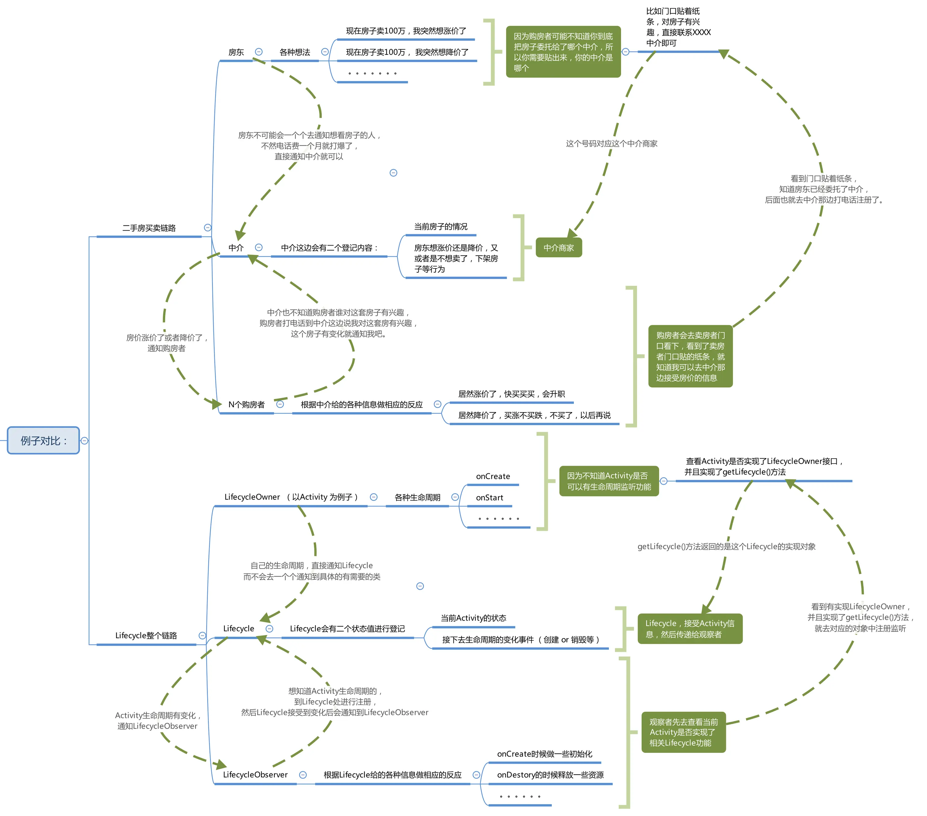 我们把以 房东 ——> 中介 ——> 购房者 三者来对比 Lifecycle ——> Lifecycle ——> LifecycleObserver。