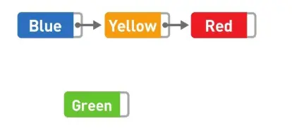 首先将 Blue 的指针指向的位置变成 Green,然后再把 Green 的指针指向 Yellow,数据的添加就大功告成了。