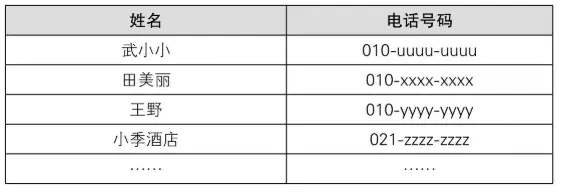 因为各个表中存储的数据依旧是没有规律的,所以查询时仍需从表头开始找起,但比查询整个电话簿来说还是要轻松多了。