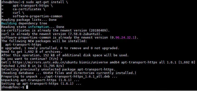 (2)添加HTTPS协议,允许apt从HTTPS安装软件包