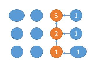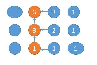 这里的话就是 dp [ i ] [ j ] = dp [ i - 1 ] [ j ] + dp [ i ] [ j - 1 ]。就是用它左边的和上边的更新,可以结合下图。