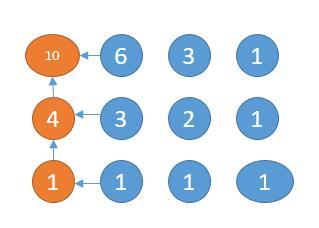 我们现在要做的就是要省略压栈的过程,直接出栈。很明显可以做到的,只需要初始化最后一列为 1 ,然后 1 列,1 列的向前更新就可以了。有一些动态规划的思想了。