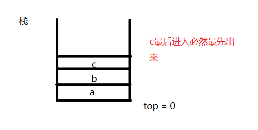 栈是一种后进先出的数据结构,且它限定为只能在一端进行插入和删除。