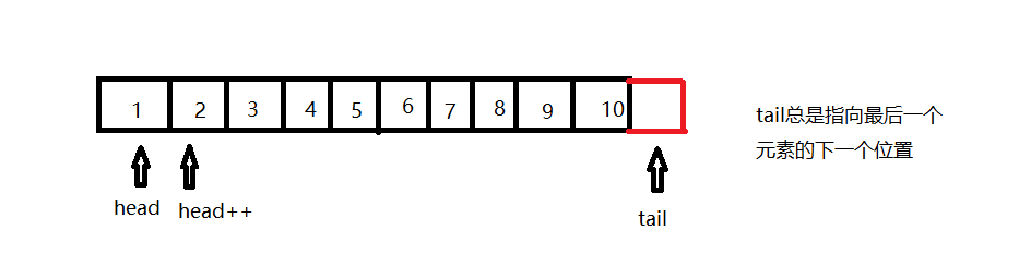 2.5!!!队列的尾部永远都指向队列最后一个元素的下一个位置。