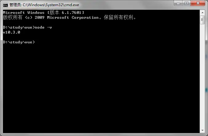 装好node后,打开命令行,使用node -v命令,验证安装。我使用的是10.3.0版本。