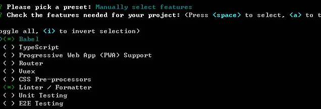 E2E Testing,端到端测试,这又是个很大的话题。端到端测试当然是好东西,但是说实话,我在实际工程中用得很少,因为增加了我的开发成本和维护成本。喜欢端到端测试的就勾选上,我就先不选了。
