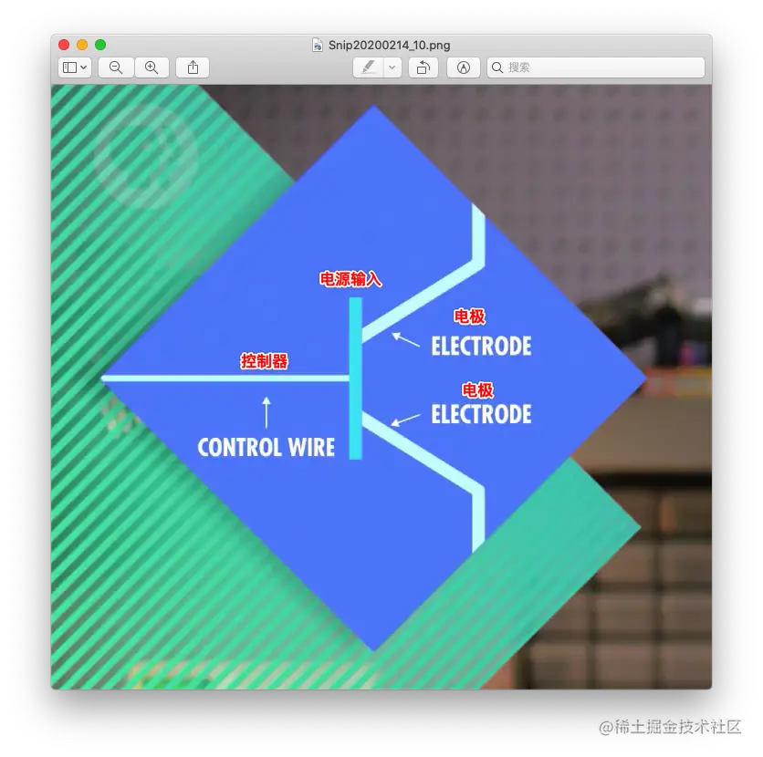 晶体管一样也是2个电极,1个控制端,晶体管也叫半导体材料,为啥呢,因为半导体材料的导电性可控,通电就能导电,不通电就不到电。在晶体管中2个电极之间填充的半导体材料,给这些半导体材料通电就能实现2个电极之间的联通,要是不给半导体材料通电,那不管2个电极之间加多大的电压电流,2个电极之间也不会联通
