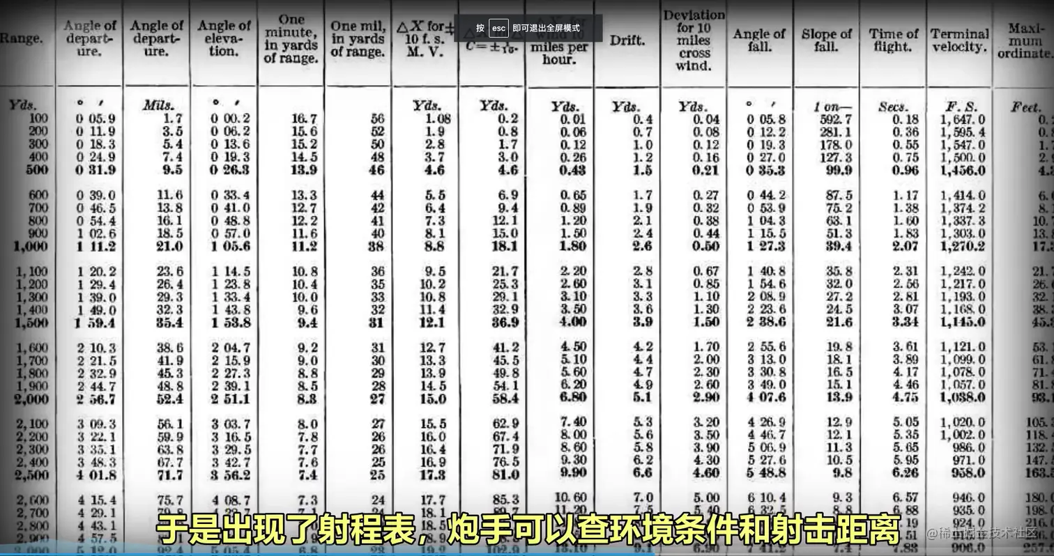 火炮炮表是计算表最出名的应用了,一直沿用到现在