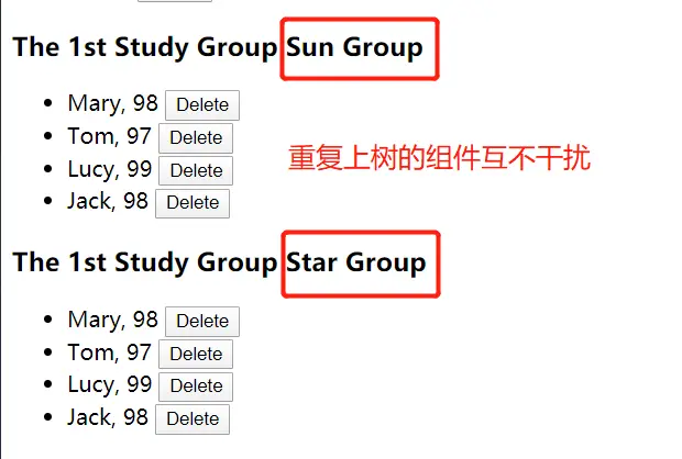 同一个自定义组件可以重复多次上树,并且它们之间没有联系互不干扰,原因是与面向对象的原理同理,在面向对象中每个new出来的实例都是一个全新的独立的个体,Vue与组件相关的底层机制也是这样。