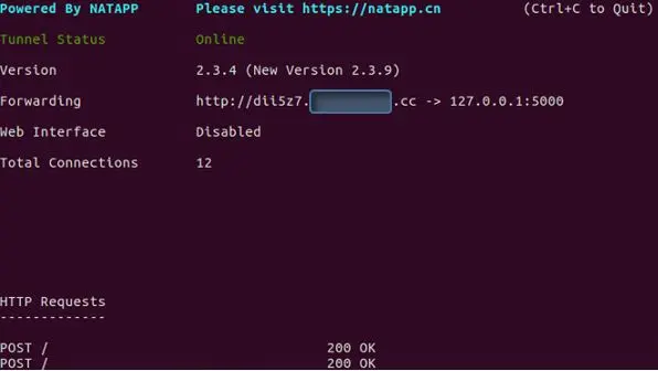 ./natapp-authtoken=上一步申请的token执行后的结果如下图所示: