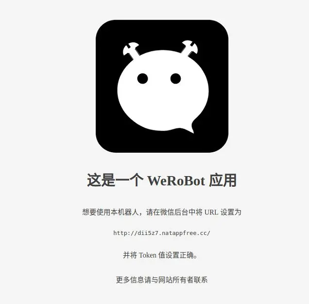 运行成功后,即可点击第 ❶ 步的“提交”按钮。可以看出提供服务的地址正好为本机的环回地址,也就是配置隧道时设置的本机地址127.0.0.1:5000。而通过隧道映射,把该地址映射成为了外网可以访问的http:dii5z7.xxx.cc地址,因此在微信公众号后台配置的地址就为该外网地址http:dii5z7.xxx.cc,此时直接访问该外网地址会出现如下图的界面: