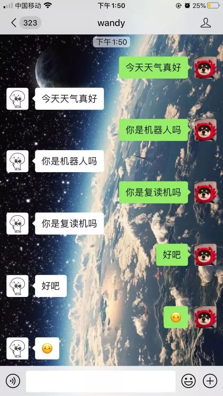 需要实现的机器人功能接口都放在了robot.py文件中,比如实现复读对话机器人功能的部分代码如下: