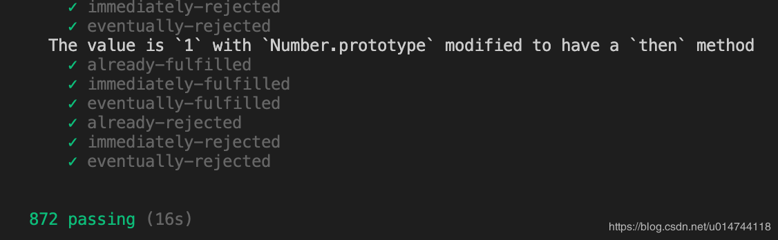 promises-aplus-tests promise.js结果截图,即通过了872个测试用例: