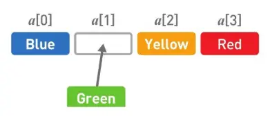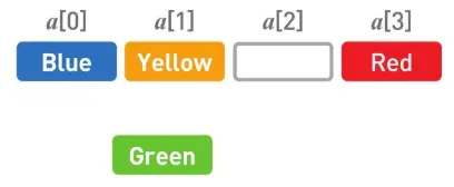 为了给新数据 Green 腾出位置,要把已有数据一个个移开,首先把 Red 往后移。