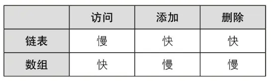 在链表和数组中,数据都是线性地排成一列。在链表中访问数据较为复杂,添加和删除数据较为简单;而在数组中访问数据比较简单,添加和删除数据却比较复杂。