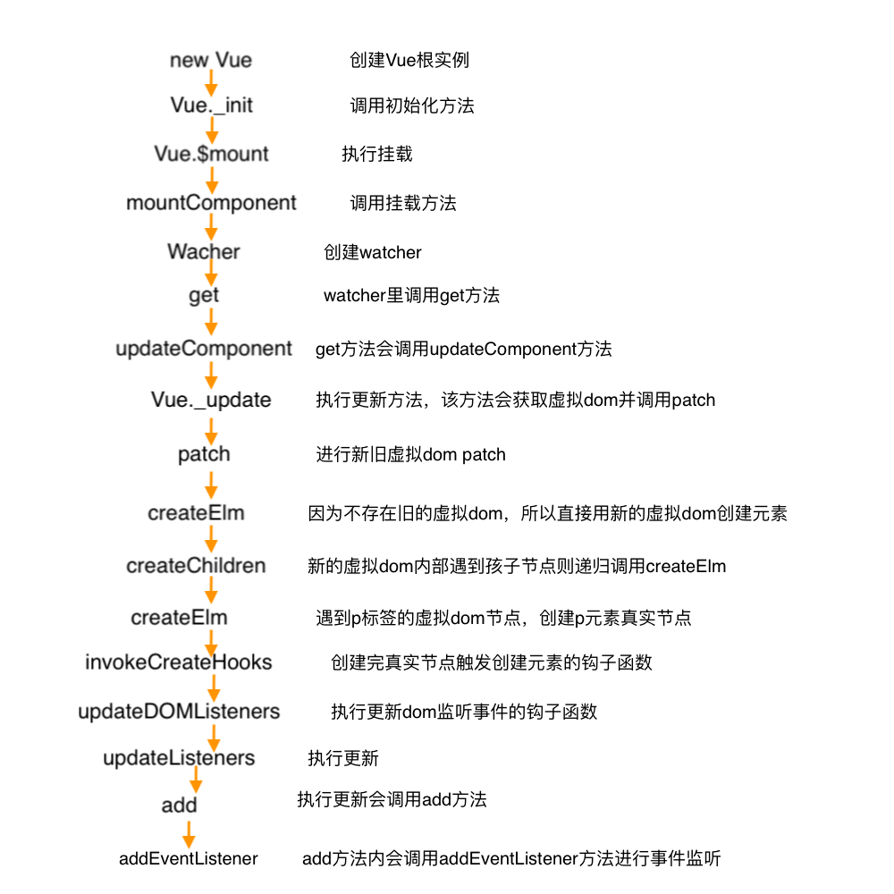 从我们new Vue实例开始,到最终p标签监听click方法,整体流程图如下(看个大概即可):