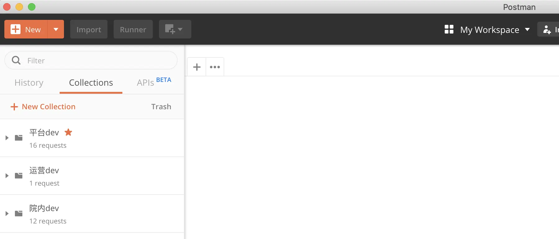 在多个产品线上来回穿切换着开发功能,以前用Postman的场景是这样的: