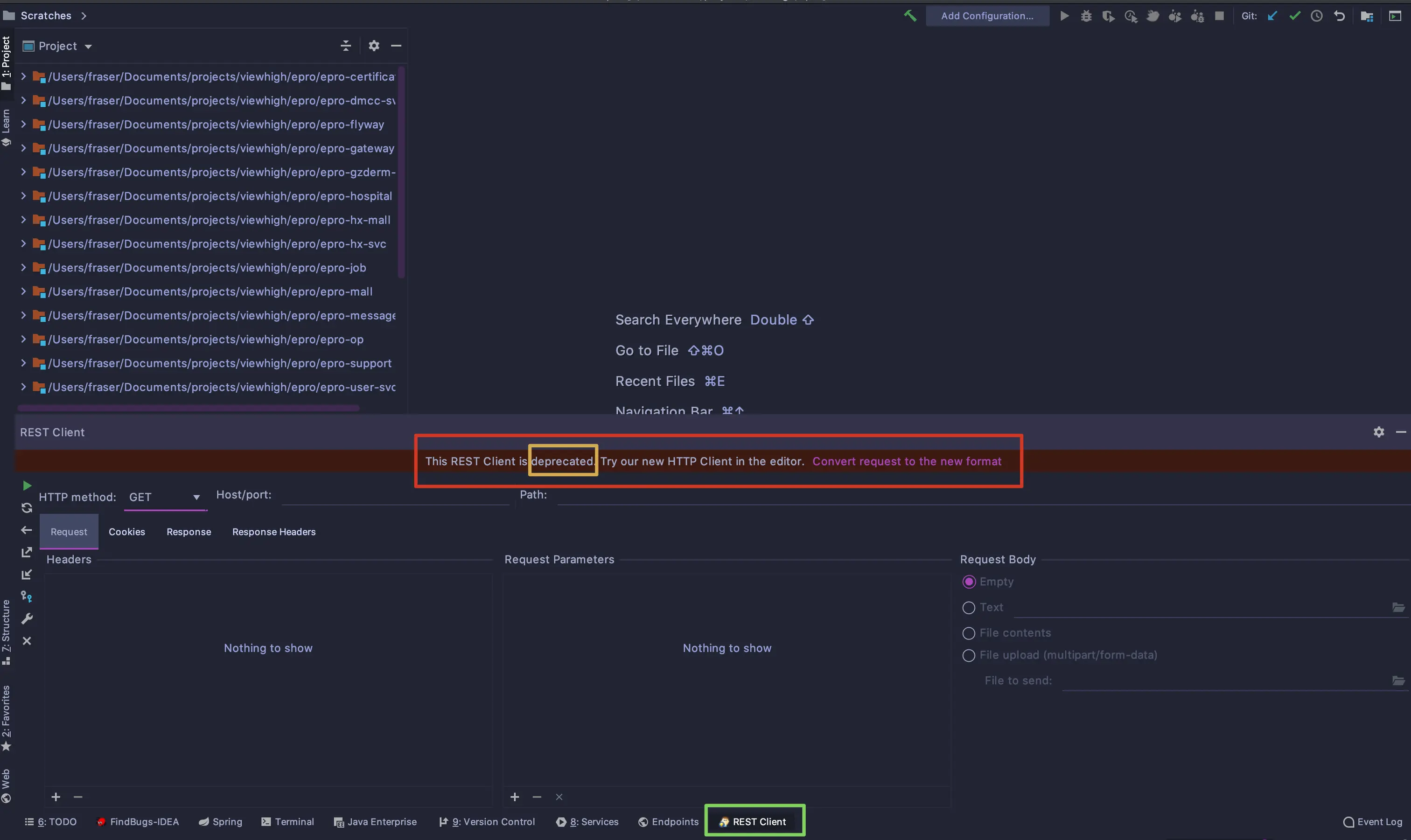 上图已给出提示,REST Client 是被弃用的,点击右侧的 Convert request to new format , 进到下面界面: