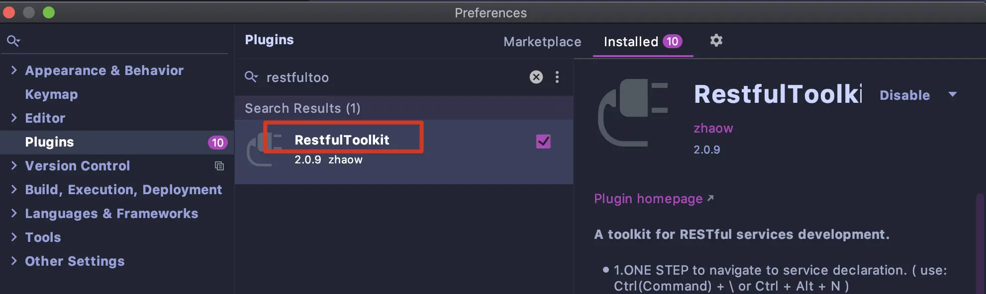 RestfulToolkit 同样是个插件,在插件市场搜索安装即可