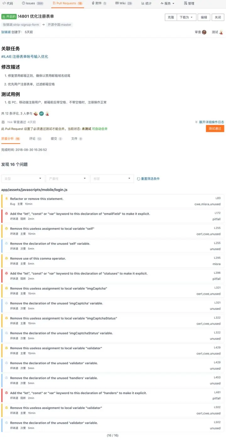 PS. 自动触发代码质量分析的功能,大大节省人力、提升效率。