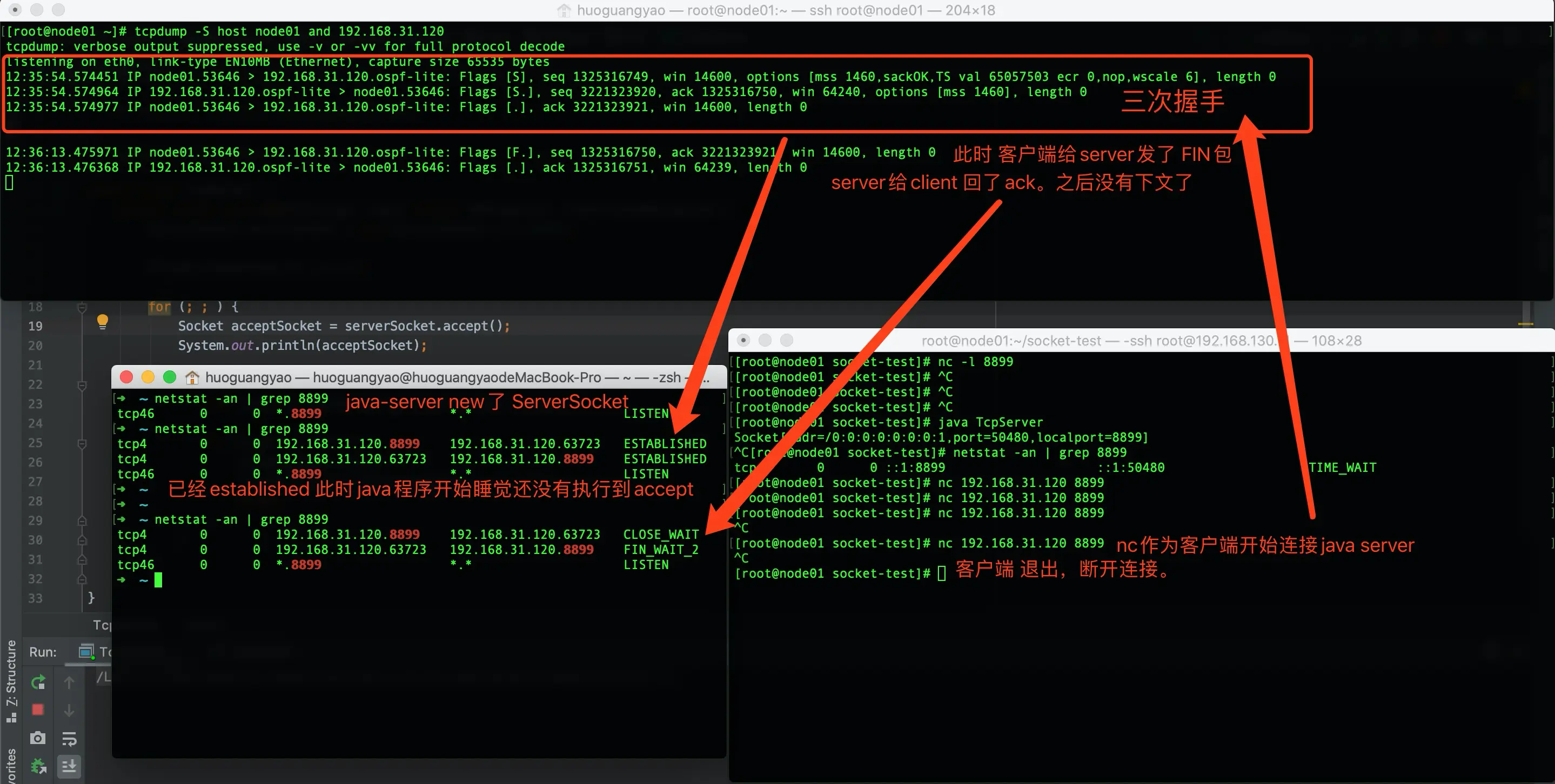 nc去连这个Java server通过tcpdump发现三次握手了