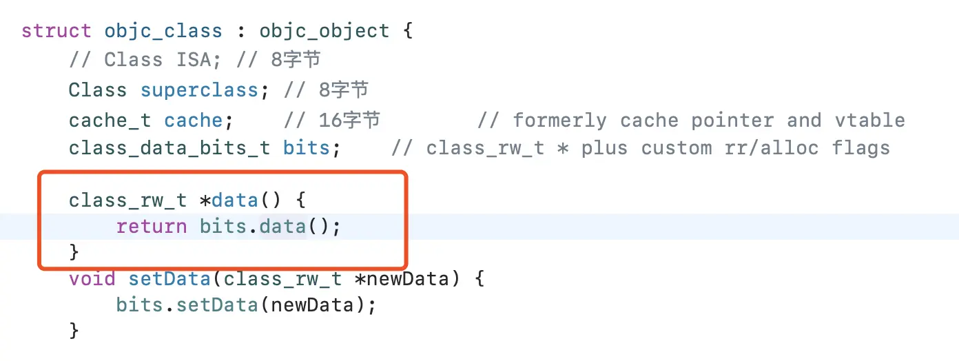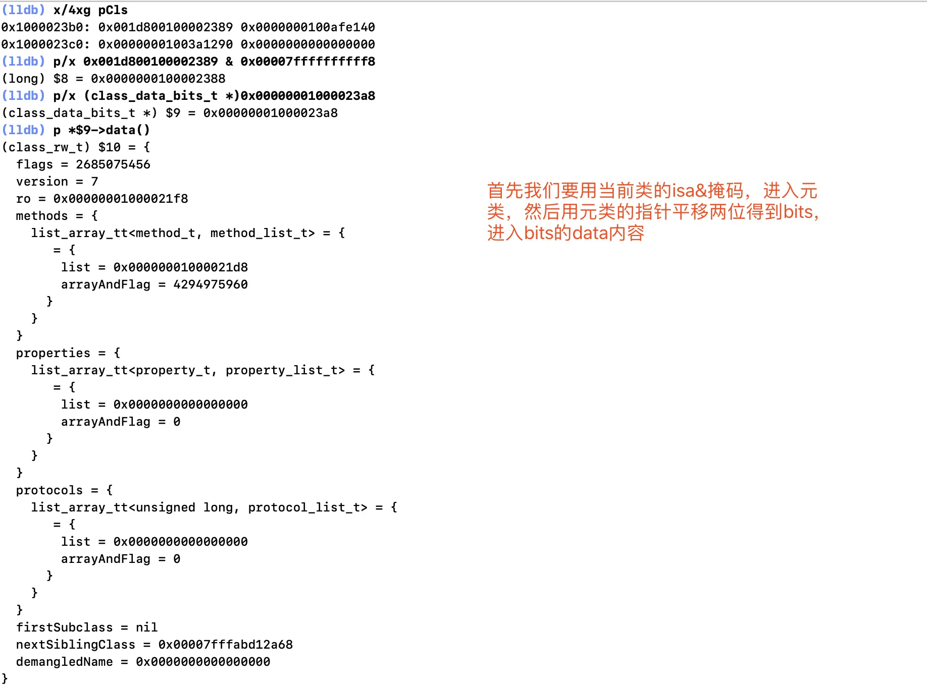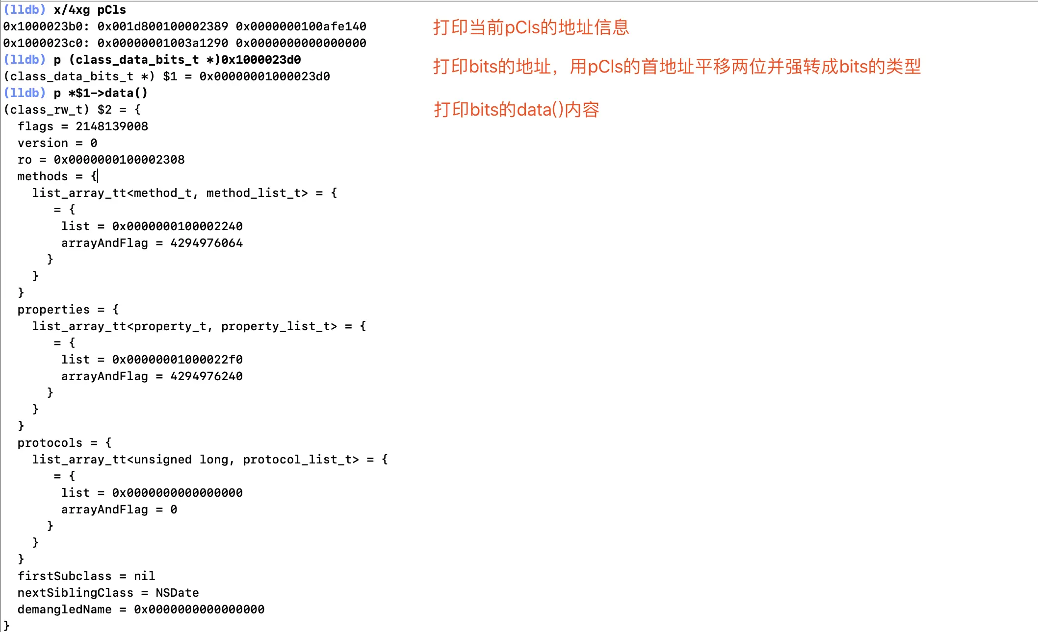 1、类的成员变量、实例变量和实例方法,都是存在bits里面。