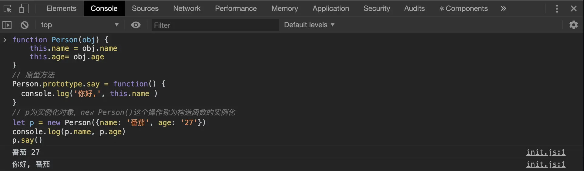 let p = new Person({name: '番茄', age: '27'})